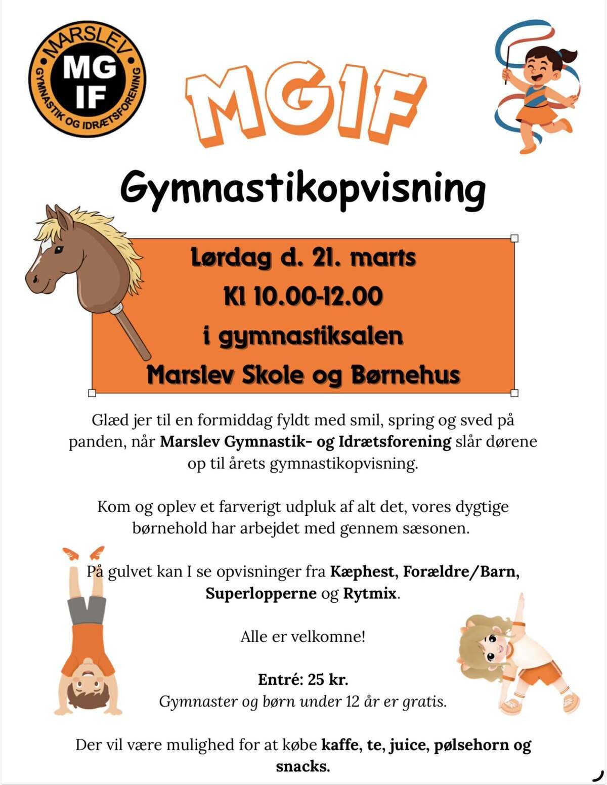 Så er det blevet tid til gymnastikafdelingens årlige opvisning lørdag d. 21. marts kl. 10:00 i gymnastiksalen. Vel mødt!